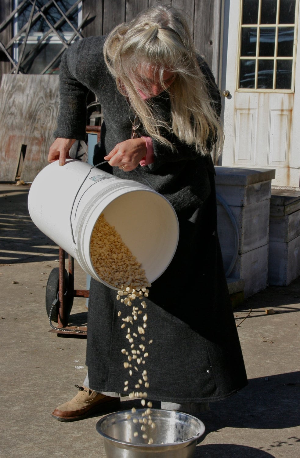 Our grits are made with non-GMO open-pollinated Hickory King white heirloom corn typically grown by us on our farm, but our most recent harvest has run out! This batch is grown by a small family seed grower in northern Ohio that has been growing Hickory King corn and other open-pollinated varieties for several generations. Once harvested, it is dried, shelled from the cob on an antique shelling machine, and then the whole corn kernels are ground fresh on our mill.