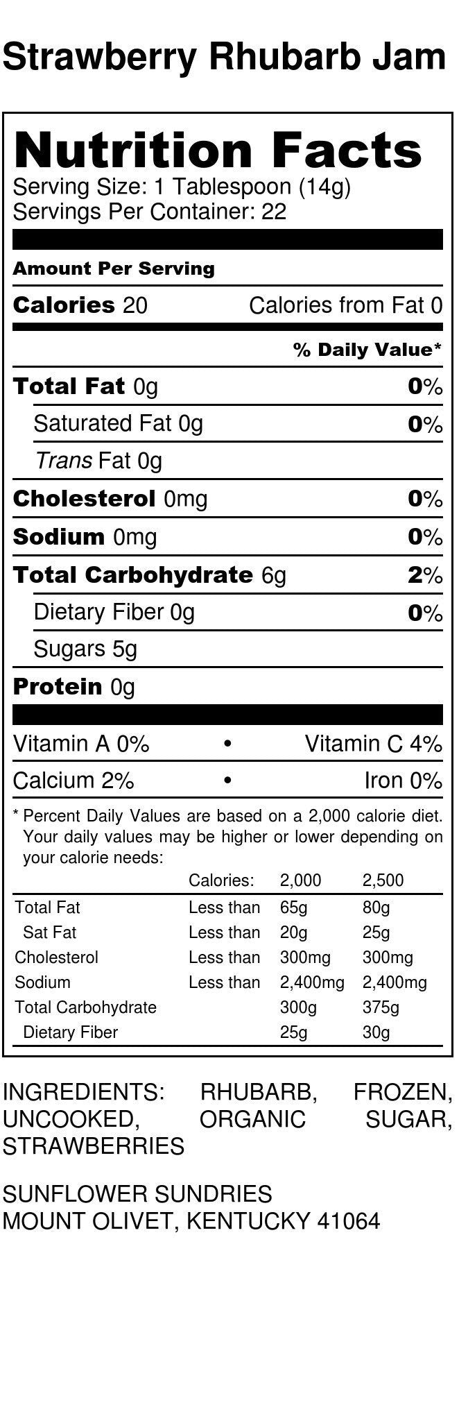 Made with Rhubarb, Strawberries, and Organic Cane Sugar.